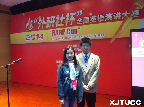 2014年"外研社杯"全国英语演讲比赛陕西赛区分赛于11月1日在西安科技大学隆重举行。经过各高校初赛选拔,全省共有44名选手参加陕西赛区比赛。西安交大城市学院电气201班的李喆同学荣获三等奖。康晓薇老师获得"指导老师三等奖"。