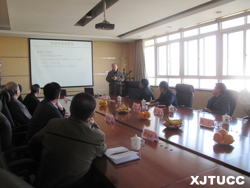计算机系许大炜老师对会计从业资格考试环境建设情况作了详细的展示和介绍,包括软硬件建设、配套设施建设、技术力量支持等。许老师介绍到,学院前期在西安欧亚学院进行了调研,按照1000个考位规模进行建设,配备了2台高性能服务器作为考试服务器,1台服务器作为考试备份服务器,并且对所有进行考试的实验室按照要求安装了足够数量的监控摄像头。