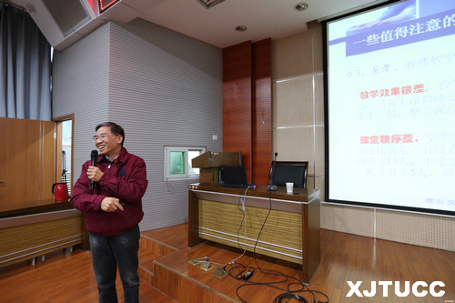 冯教授从目前课堂教学中存在的一系列问题谈起,着重强调了作为一名教师站好讲台、讲好课的重要性。他指出,讲台是对学生进行素质教育的主渠道,是教师践行"教书育人,为人师表"的舞台,"站讲台"在教育中扮演着非常重要的角色。他结合生动的案例和其个人几十年的教学生涯,就教师站好讲台、讲好课的前提、标准、关键因素等作了详细的说明。同时,他还指出了教师从事科研工作的重要性。