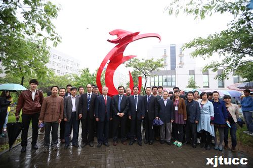 解主任对雕塑的造型和内涵进行了简单的阐释,他表示,雕塑下方是城市学院的英文字母缩写“CY”,上边是一只展翅翱翔的飞鸟。作品命名为“腾飞”,寓意着学校如日中天,蒸蒸日上,雕塑“腾飞”的整个造型显示着城市学院奔腾不息,勇于进取,敢于创新的精神,它标志着西安交大城市学院正以崭新的姿态,奋力拼搏,为建设国内一流,国际知名的应用型大学而努力。