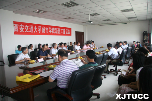 9月11日下午,西安交通大学城市学院在行政楼508会议室召开欢迎新教工座谈会。院长陈光德、党委书记冯民柱、副院长崔杜武、副院长张敬朝、副院长李加玉、院长助理徐君陶、工会主席王海民以及各系(室)、中心(部)负责人、新教工等参加了座谈会。会议由党委书记冯民柱主持。