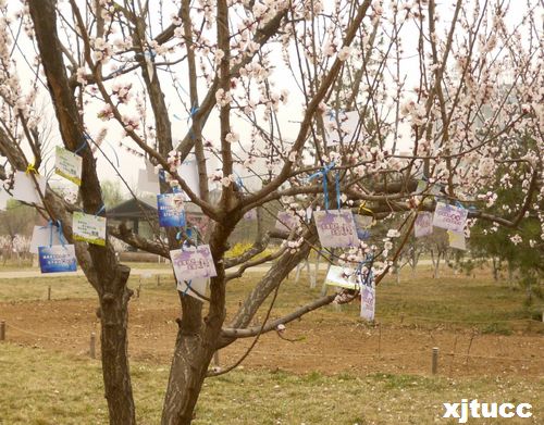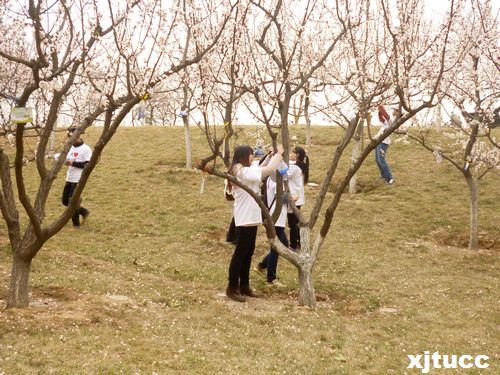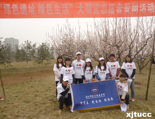 杨柳抽芽始于人,万物萌发源于春。2013年3月12日上午,西安交大城市学院、长安大学以及大明宫遗址保护办系统近百余名志愿者,来到大明宫国家遗址公园参加“绿色遗址 绿色生活”爱树活动,为“城市中央公园”的绿植培土、浇水,并为树木挂上公益牌。