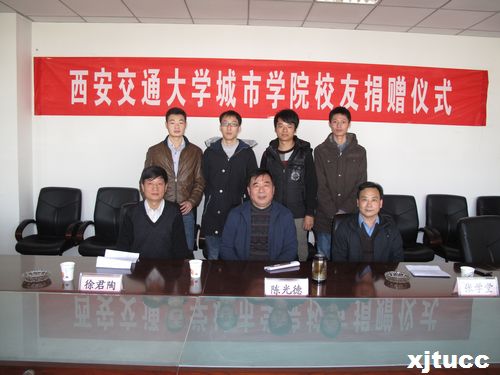 11月23日下午,西安交大城市学院校友捐赠仪式在行政楼508会议室举行。学院院长、教育基金会理事长陈光德教授,院长助理、党政中心主任、教育基金会理事徐君陶老师,校友捐赠人代表,校友办老师,各系学工办负责人和部分学生代表参加了此次捐赠仪式。捐赠仪式由院就业指导与校友服务中心主任、教育基金会秘书长张学堂老师主持。