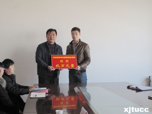 仪式伊始,陈院长代表学院教育基金会接受了捐赠人代表的9万元捐赠,并向捐赠代表颁发捐赠证书,徐君陶助理向捐赠人代表赠送纪念品。捐赠人代表吕万虎校友发言,他谈到,此次回到母校倍感亲切,感谢学院老师们一直以来的教育与引导。怀寸草之心,表感恩之情,作为捐赠人之一,捐款作为学院学生创新创业基金,用于支持母校学生创新创业活动,提高母校学生创新创业能力,希望籍此为进一步提升母校的综合实力和社会影响力尽一份绵薄之力。最后他代表所有捐赠人祝母校能够取得更为辉煌的成绩、老师们身体健康、工作顺利、在校的学弟学妹们学业有成。