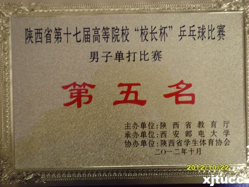 10月20日—21日,2012陕西省第十七届高等院校“校长杯”乒乓球联赛如期举行,此次比赛由陕西省教育厅主办、西安邮电大学承办。比赛共有29所高等院校参加。西安交通大学城市学院积极参与比赛并取得了团体赛第一名的佳绩。