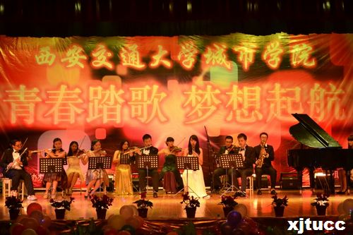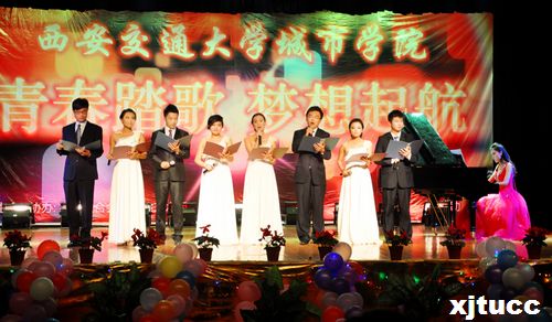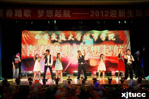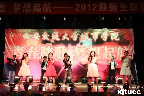 青春踏歌,梦想起航。9月27日晚,由西安交通大学城市学院学生会主办的2012迎新生联欢晚会在学院大学生活动中心盛大绽放。学院党委书记赵金胜老师,工会主席王海民老师,应用经济系主任杨健全老师,艺术系主任解安宁老师,电气与信息工程系主任赵录怀老师,体育教研室主任苏志老师,管理系副主任冀祥老师,应用经济系副主任史冬梅老师,教学服务中心副主任兼招生办主任李勇老师,外语系副主任韩红建老师,以及各中心、各系学工办的老师应邀出席了晚会。
