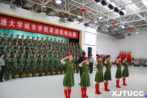 同学们队列整齐,英姿飒爽,嘹亮的歌声中,我们看到了新生激扬的青春和如火的热情。三营十一连男生在《中国军魂》的演唱中,跌宕起伏,慷慨激昂;一营三连女生的舞蹈欢快活泼,宛如军中的铿锵玫瑰;五营二十连的男声合唱《弹起我心爱的土琵琶》,他们的歌声悠扬、表演深情,无不向我们展示了军人的铁汉柔情与坚定信念;四营十四连的男生在《大刀进行曲》的歌声中,将对胜利的渴望、对敌人的仇恨表现得淋漓尽致,场上喝彩声不断。比赛在全场观众的掌声中完美地落下帷幕。
