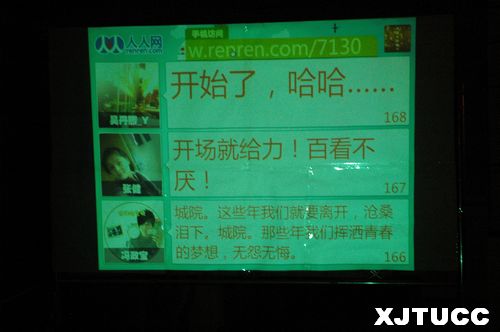 欢送会在学院领导以及各位老师的深情寄语中拉开帷幕,原创微电影《初见,再见》将全场观众带入了毕业季这别样的氛围之中。本场晚会分为“2008——那年大一”、“2009——大二的问候”、“2011——大三起航”和“2012——我毕业了”四个篇章以音乐剧的形式贯穿整场晚会。啦啦操、乐队、歌曲串烧、舞蹈等多种形式的节目精彩纷呈,赢得台下观众阵阵喝彩。值得一提的是,本次晚会,老师与同学同台演绎,由应用经济系和艺术设计系全体辅导员老师表演的《水兵舞》、经济系杨超敏老师和黄思尧同学合唱的《屋顶》、应用经济系副主任史冬梅老师、谢伟彤老师深情对唱的《月亮代表我的心》以及谢伟彤老师别具陕北特色的独唱《泪蛋蛋抛在沙蒿蒿林》将整场晚会推向了高潮。而艺术设计系郑加双、胡京婷同学表演的小品《笑点低》更是令全场欢笑不绝,掌声不断。