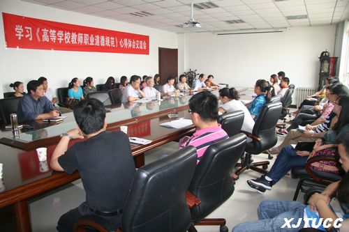 5月25日下午,西安交通大学城市学院党群系统在行政楼508会议室召开学习贯彻落实《高等学校教师职业道德规范》(以下简称《规范》)心得体会交流会。学院党委书记赵金胜、各系、各教研室教工党支部书记、工会小组长、2010年6月以后入职的35岁以下部分青年教师参加了会议。会议由学院工会主席王海民主持。