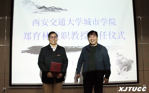 11月23日晚,F100多功能报告厅座无虚席,西安交通大学城市学院郑育林兼职教授聘任仪式在此隆重举行。院长陈光德教授、党委书记赵金胜副教授出席聘任仪式。