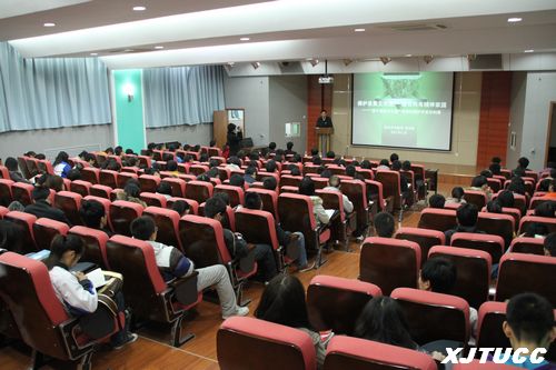 伊始,赵书记简要介绍了郑育林局长的个人简历及学术成果。陈院长为郑局长颁发了兼职教授聘书,并为其佩戴校徽。随后,郑教授以“保护文化遗产,建设精神家园——关于西安文化遗产资源的保护开发与利用”为题,为城院学子上了一堂生动精彩的文化遗产课。