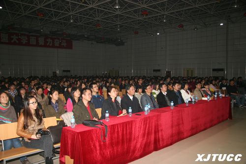 10月31日晚,华灯初上,2011西安高校大学生就业指导巡回演讲季暨第五站西安交通大学城市学院演讲会在学院大学生活动中心隆重举行,本次就业指导巡讲活动由西安市人才服务中心、FM101.1《张持有道》栏目、西安毕业生就业市场共同发起,我院学生就业指导与校友服务中心和应用经济系联合举办。院党委书记赵金胜老师、学生就业指导与校友服务中心主任张学堂老师、应用经济系主任杨健全老师等领导和老师参加本次演讲会。作为本次演讲会的主体,FM101.1《张持有道》栏目主播张持老师率领其由五位资深导师组成的团队走进校园,为我院广大同学的就业问题进行答疑解惑。演讲会由FM101.1《星星乐道》栏目主播付星老师主持,我院1000余名同学到会聆听学习。