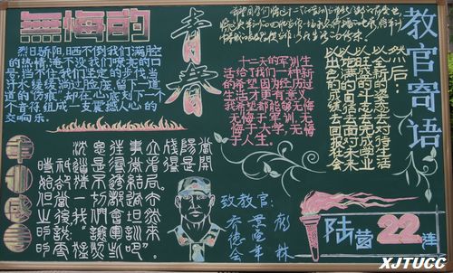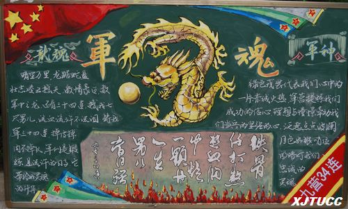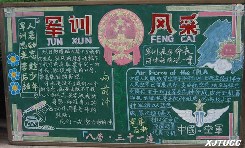 各连板报全部由学员们利用训练之外的时间设计、完成。板报以军训生活为主题,涵盖学员们对军训生活的感受、对绿色军营的畅想以及对大学生活的憧憬等多方面内容。其中,十八连以“英姿飒爽 笑靥如花”为主题,通过文字、图片的巧妙布局,完整地展示了军中绿花的可爱与顽强;二十二连、三十一连的板报汲取了军营生活中的点点滴滴,风格质朴,内容丰富,全面展现了钢铁男儿的坚定意志与拼搏精神;三十四连的板报突出了“军魂”这一思想,精心构图,色彩饱满,活灵活现地抒发了学员们的军人情怀。