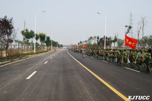 “强我体魄,树我形象。挺起胸膛,城院脊梁。”伴随着嘹亮的口号,学员们在下午六点返回学院,圆满地完成了此次拉练。