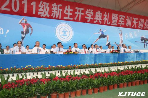 8月24日上午9点,西安交通大学城市学院在运动场隆重召开2011级新生开学典礼暨军训开训仪式。西安交通大学党委常委、副校长程光旭教授,西安交通大学社会教育管理处处长、西安交大城市学院董事冯晓光教授,学院董事会董事长韩东升先生,学院院长陈光德教授,党委书记赵金胜副教授,副院长崔杜武教授,副院长张敬朝高级工程师,副院长李加玉老师和工会主席王海民教授出席大会。同时在主席台就座的还有学院各系(室)、中心(部)主要负责人。开学典礼由万翔同学主持。