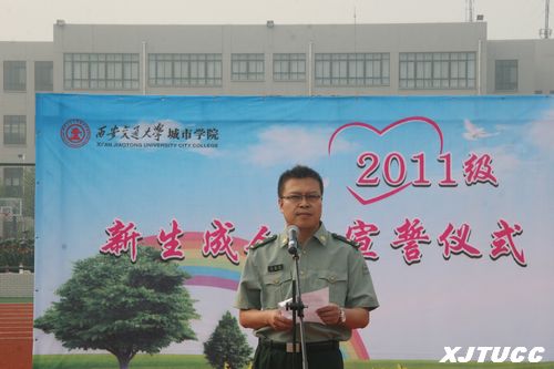 8月24日早晨,西安交大城市学院2011级新生成人礼宣誓仪式在学院体育场隆重举行。学院党委书记赵金胜副教授、学生服务中心主任马兆平老师、各系领导、新生辅导员及2011级全体新生参加了仪式。