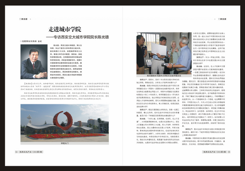 近日,由陕西省社会科学院、陕西文化产业促进会主办的期刊《陕西文化产业》用连续四版报道了西安交大城市学院院长陈光德教授的专访。
