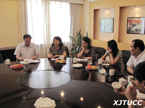 2011年7月19日,陕西省学位办主任孙朝、副主任杨俊利等一行5人与西安交大城市学院领导及相关部门座谈调研独立学院学位授予工作。城市学院院长陈光德教授、管理系主任卫民堂教授以及教学中心、党政中心负责人在西安交大南洋大洒店第三会议室接待了省学位办领导。