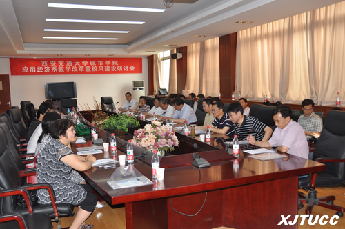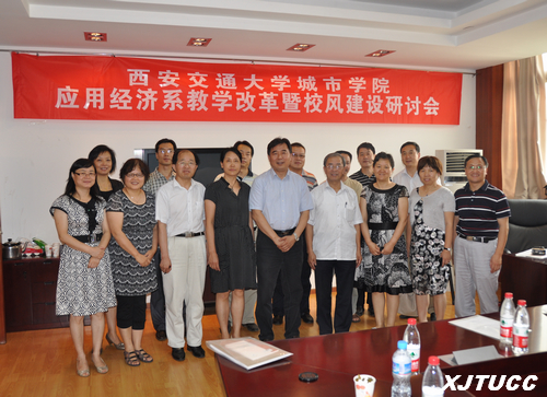 2011年7月12日,西安交大城市学院应用经济系召开教学改革暨校风建设研讨会。学院院长陈光德教授、原副院长李能贵教授以及教学中心、党政中心、学生中心、就业中心和艺术系、电信系的负责人出席了会议。