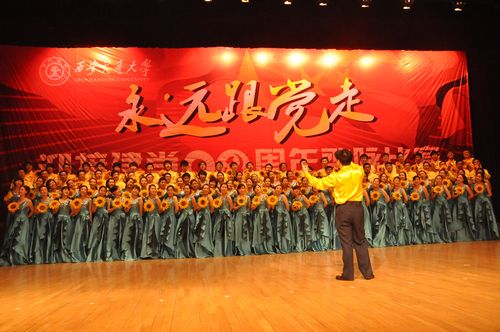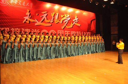 由交大党委宣传部、大学生党委、组织部、学生处、团委和工会联合承办的“永远跟党走”迎接建党九十周年歌咏比赛于6月9日晚在交大宪梓堂隆重开幕。6月10日晚,由西安交大城市学院院长陈光德教授、党委书记赵金胜副教授带领下的合唱队,在第三场比赛中一展歌喉,一曲红歌串烧《和谐颂》引得在场阵阵掌声和喝彩,最终获得一等奖的好成绩。