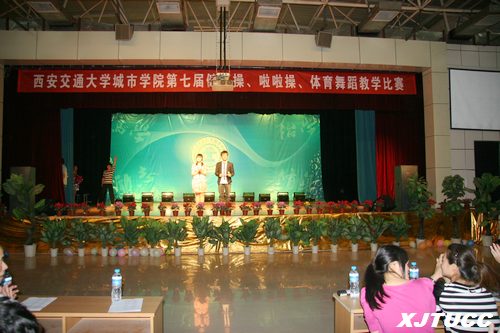 西安交大城市学院体育部主办的“西安交通大学城市学院第七届健美操、啦啦操、体育舞蹈教学比赛”于2011年6月2日晚7:00整在学生活动中心举行。学院党委书记赵金胜副教授、副院长崔杜武教授、副院长李加玉总会计师、工会主席王海民教授、机械工程系系主任诸文俊教授、电气与信息系主任申忠如教授、管理系副主任冀祥副教授、外语系副主任赵永生副教授及体育部全体教师出席了本次比赛。