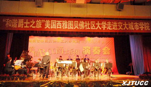 美国BCC爵士乐团成立于上个世纪70年代,乐团主要成员由美国西雅图贝佛社区大学学生组成。该乐团40年来先后出访多国高校,开展艺术交流。当晚,在学生活动中心,BCC乐团的团员们为城院师生上演了一场精彩的爵士乐专场演奏会。学院党委书记赵金胜副教授,副院长崔杜武教授,副院长张敬朝高级工程师,副院长李加玉高级会计师,工会主席王海民教授,部分系室、中心的领导、老师与数千名同学一同前来观赏。活动受到华商报、都市快报等知名媒体的关注。