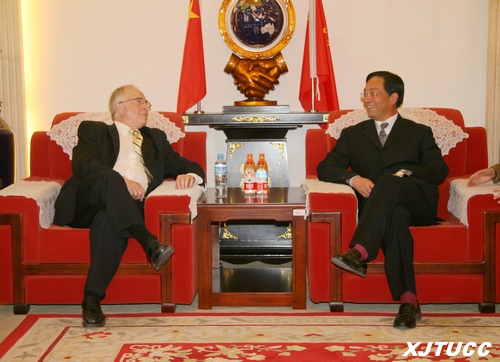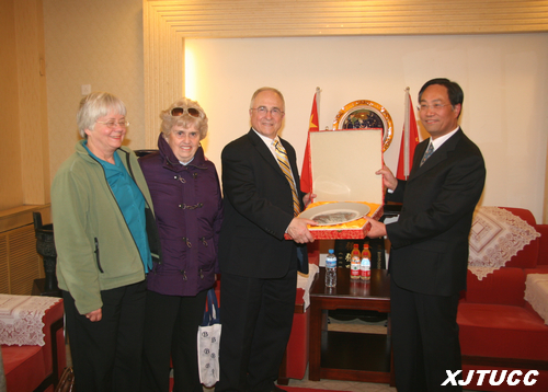2011年3月28日下午,美国西雅图贝佛社区大学BCC爵士乐团一行33人来到西安交大城市学院开展交流访问,学院党委书记赵金胜副教授亲切接见了来访的乐团指挥Hal Sherman夫妇。
