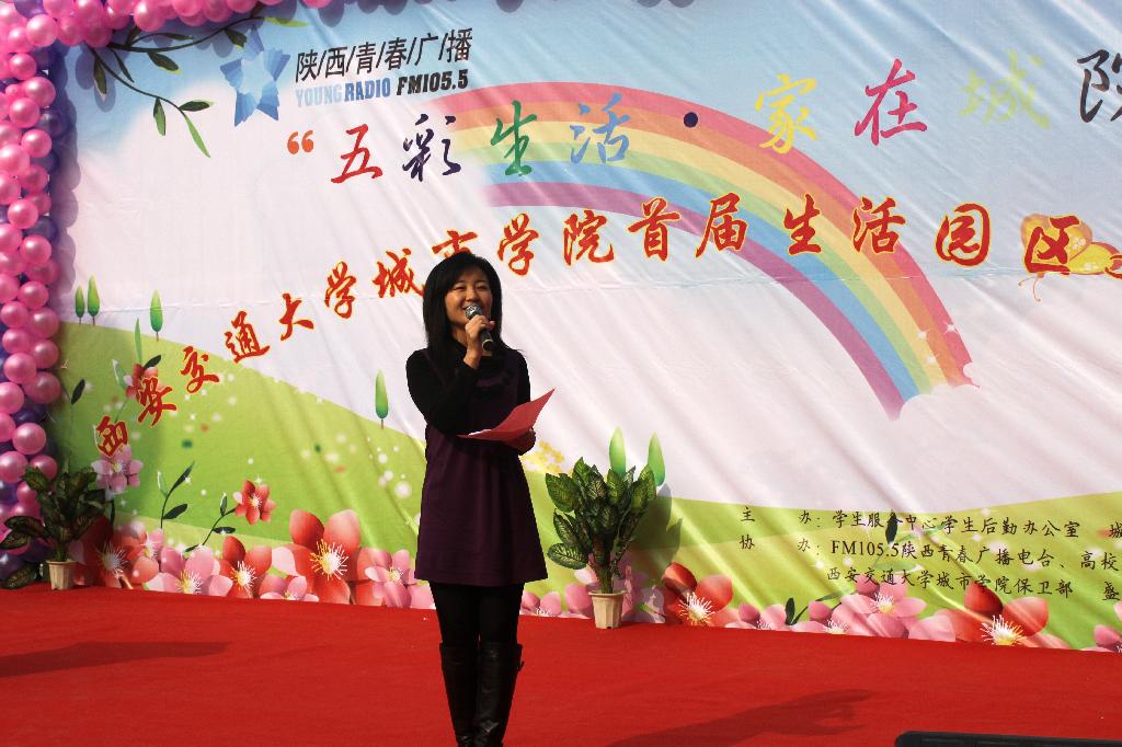 本次园区文化月开幕式得到了陕西人民广播电台青春广播FM105.5的现场直播,电台主播小如亲临现场主持。在接下来的园区联谊活动中,学院保卫部和同学联合送出的幽默广播操《快乐生活》让园区保安的形象更加可爱,中快餐饮打饭师傅们献上健康操,亲切的楼管阿姨悠扬的清唱,让平日里生活在园区里的同学们加深了对他们的了解。园区的同学们也带来吉他弹唱、礼仪时装秀、校园三句半等表达自己对园区工作人员的感谢,对生活的热爱。联谊现场许多有趣的游戏博得了大家的喜爱,许多以宿舍为单位来开展,加深了宿舍的情谊。最后联谊活动在后勤办公室主任王玉峰老师深情演唱《欢聚一堂》中结束。