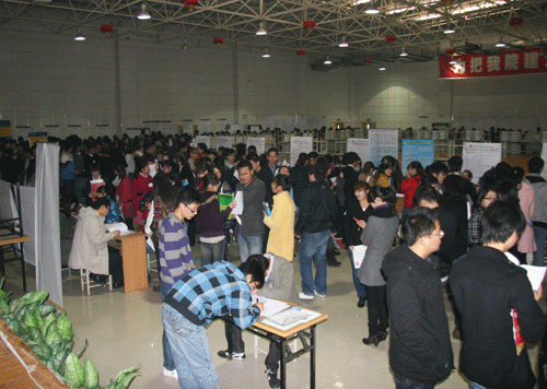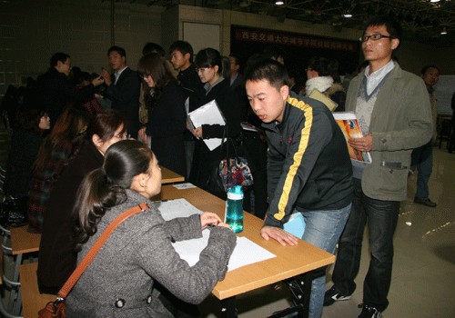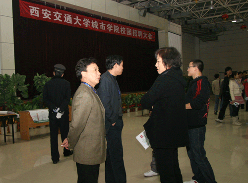 西安交大城市学院2011届毕业生共有1800多人,为进一步提高毕业生就业质量,学院就业办经过精心筹备举办了这一校园招聘会。本次招聘会向毕业生提供了3200多个就业岗位。当日的招聘会吸引了国美电器、特变电工等知名企业进场招聘,由于提供的岗位范围广,求职者众多,各展位前均挤满了求职人员。据了解,参加此次招聘会的应聘人员除了我院学生外,还有部分外校、外省市的毕业生。