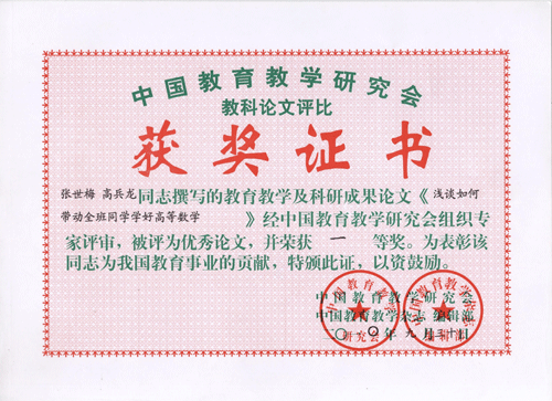 近日,西安交大城市学院收到中国教育教学研究会和中国教育教学杂志编辑部发来的喜讯。由学院数学教研室张世梅老师和应用经济系经管905班高兵龙同学共同撰写的《浅谈如何带动全班同学学好高等数学》论文在《中国教育教学杂志》(创新教育版,第181期)正式发表,同时,该论文经中国教育教学研究会组织专家评审,被评为优秀论文,并荣获一等奖。