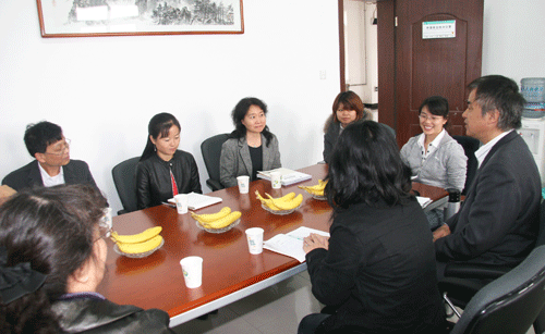 随后,西安交大城市学院外语系日语专业顾明耀教授、外教麻生健人老师及我院其他日语专业老师与来宾就日语专业特色建设等共同关心的话题进行了细致的交流和探讨。顾明耀教授首先介绍了我院目前日语专业的师资队伍建设,和针对独立学院的学生特点如何开展教学工作等方面的情况。