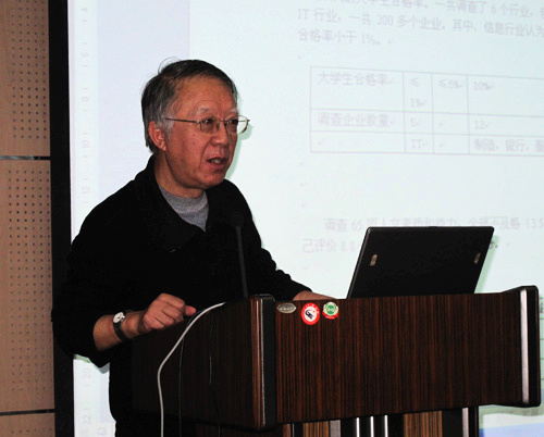 2009年1月15日,西安交通大学机械学院工业设计系主任李乐山教授在F100多媒体大教室为我院教职工作了一场“人文重于能力,能力重于知识”的学术报告。我院党委书记、院长陈光德教授,副书记、副院长韩超副研究员,副院长李能贵教授,李加玉总会计师出席了报告会。