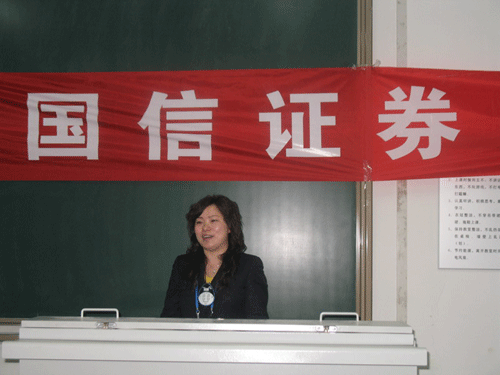 应我院应用经济系的邀请,12月4日下午,国信证券股份有限公司西安分公司市场拓展部负责人郑婷女士为我院学生进行了“实习+就业”校园宣讲,本次活动由系主任助理史冬梅老师主持。