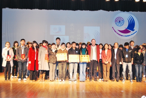 此后进行了首届金秋外语文化节的闭幕式及颁奖仪式,学院党委副书记、副院长韩超副研究员做了精彩讲话,她认为此次金秋外语文化节将大家带进了异域文化的天堂,使我们每个人全面地感受到了异域文化的芬芳,更对英语有了一个全新的认识与了解,同时也展现了个人的魅力与风采,激发了同学学习英语的浓厚兴趣,希望大家把这种浓厚的学习氛围继续保持下去,争取更好的成绩。随着金秋外语文化节之英语话剧大赛、经典影视配音大赛、“笔墨之星”外语书法大赛、外文知识竞赛、英语演讲比赛的颁奖仪式,我院首届金秋外语文化节划上圆满的句号。