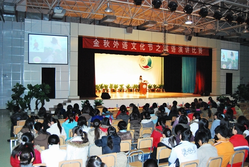 12月7日晚,学院首届金秋外语文化节系列活动之英语演讲比赛在学生活动中心成功举行,此次演讲比赛由我院电信系、应用经济(机械、外语)系学生分会承办,我院外教Mr.Lutf及外语系韩红建老师、彭元老师、韩英花老师、王圆媛老师担任比赛评委。