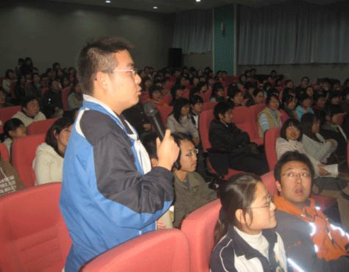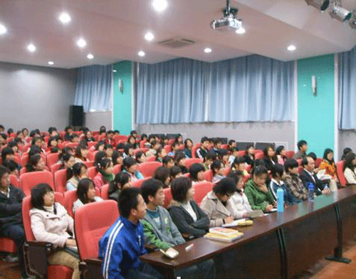 我院外语系主任助理韩红建老师首先对袁沛清主任的到来表示热烈欢迎并向大家简要介绍了袁沛清主任。随后,袁沛清主任用生动形象的生活实例向大家讲解并展示了中日文化的异同之处,让大家对日本民俗风情,经济文化,宗教信仰等有了多角度全方面的认识。他生动、幽默的语言辅之形象丰富的图片和典型的生活实例,不时博得全场同学热烈的掌声,现场气氛异常活跃。在现场提问环节中,我院同学对中日文化、中日关系,以及两国宗教异同等问题进行了踊跃的提问。特别在提到中日关系时,有着多年外交经验的袁沛清主任做出了精辟而准确的回答:中日两国是亚洲乃至世界最具有发展潜力的国家,在处理中日关系问题上,我们必须抱着实事求是的态度,积极进取的心态,互帮互助,互利互惠,取长补短,共同进步。袁主任的回答得到了全场持久而热烈的掌声。在活动最后,袁沛清主任向我院外语系馈赠了其最新译作《日本博览》图书一套,以表示对我院学生的勉励关怀之情。