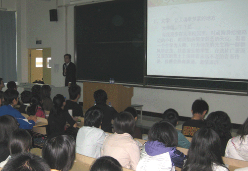 万磊主要从理论知识、社会实践、人际关系等方面,对当代大学生的人生规划做出了全面阐述和剖析;作为大学生创业的优秀代表,金宏平则着重从社会实践,自身管理能力,人生目标规划等方面为大家畅谈了就业、创业、大学生人脉关系维护等问题。整个现场气氛活跃,掌声不断,他们还与同学们进行了亲切的交流,对同学们提出的问题都一一做了回答。