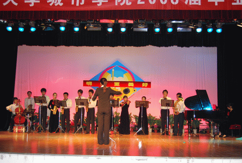 2008年7月2日晚七点,由我院艺术团话剧组的同学自编自演的话剧《我的大学》在活动中心上演,该剧剧本专门为大四毕业学生所创作,剧情紧扣04级学生在我院大学四年里的学习生活,学习、军训、运动会、考研、离别各个场景再次出现在我们的眼前,演员们投入的演出反映了首届毕业生的心声,大学四年、感动四年,离别不会是永远,我们永远是城院学子!