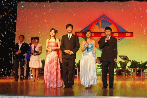 7月3日晚七点,《明天更美好》文艺晚会继续在学生活动中心上演,学院各级党政领导和老师以及各年级辅导员老师均到场观看演出。 晚会在欢快的舞蹈《我们毕业了》中拉开帷幕,毕业班学生花磊同学演唱的歌曲《一路上有你》,与场下同学、老师一起倾诉着同窗情、师生情,其后的民族舞,管乐、民乐联奏,京剧清唱等节目精彩纷呈,将晚会气氛一步步推向高潮。晚会还以视频的形式,将学院党委书记、常务副院长陈光德教授,数学教研室主任寿纪麟教授等学院党政领导、首席教授们寄予04级学子的深切厚望及殷殷祝福一幕一幕送出,体现了老师对首届毕业生的关怀。