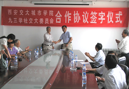 协议约定:双方定期合作组织开展活动、交流有关情况,九三学社西安交通大学委员会动员社员在制定培养方案和教学计划、选派资深教授为师生做学术报告、编写教材、授课等方面对城市学院进行支持等。九三学社陕西省委副主委刘斌、九三学社西安交大主委王兆安、西安交通大学党委统战部部长张定红等发表了热情洋溢的讲话。一致认为九三学社西安交通大学委员会在交大范围内是一个比较大的民主党派,凝聚了一大批在国内外很有影响力的专家学者,在学校参政议政以及其它各项工作中发挥了重要作用。一致表示九三学社西安交通大学委员会要为社会多做一些服务工作,特别是在教书育人方面要发挥“九三”的学术优势,为城市学院的建设与发展贡献自己的力量。王兆安主委强调,支持城市学院就是支持交大的发展,我们也非常看好城市学院。