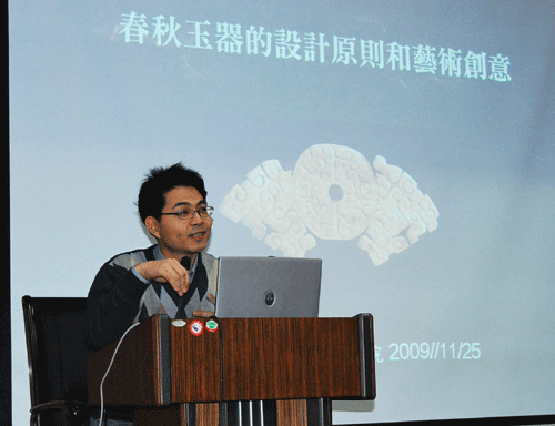 最后,蔡先生为全体与会师生做了主题为“春秋玉器的设计原则和艺术创意”的专题讲座,讲座主要阐述春秋和战国玉器的风格特征,通过简单的纹饰单元分析和设计原则,让在座的全体师生懂得了如何欣赏和鉴别春秋、战国玉器。蔡先生通过讲解玉器欣赏,并结合艺术设计系专业特点启发学生的思维。同学们感到受益匪浅,为以后专业创作起到积极影响。