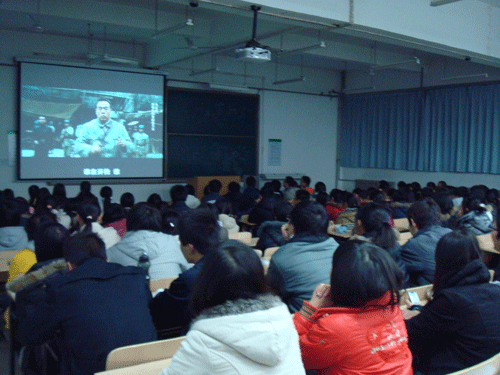 学院党校第九期培训班电教单元于11月16日至19日晚7∶00在E100教室进行,全体入党积极分子、学生党员共同观看了电影《建国大业》,重温了那一段烽火岁月。