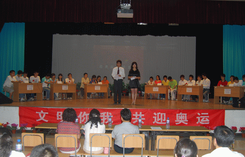 为丰富学生的课余生活,展现我院学生风采,帮助大家了解奥运会的发展历程,崇尚奥运精神,迎接即将到来的北京奥运会,给同学们提供一个交流和学习的平台,院学生会于六月十一日晚举办了“同一个世界同一个梦想”迎奥运知识竞赛, 笃学书院07级、笃学书院06级、应用经济系、管理系、电气与信息工程系 、计算机与信息管理系六支代表队参加了比赛,学生会科技部的同学还利用课余时间专门为本次比赛制作了抢答器。