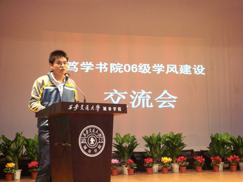 2008年4月1日晚,笃学书院06级学风建设交流会在学生活动中心隆重举行。笃学书院06级全体学生和辅导员参加交流会。