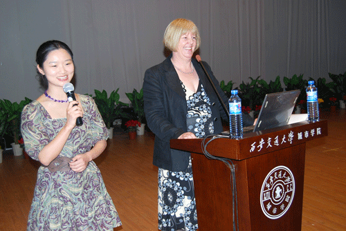 3月18日,笃学书院07级举行“感受异域风情,交流西方文化”专题报告会。来自英国阿伯丁大学的芭芭拉教授和在读博士中国留学生刘洋女士在学院学生活动中心为笃学书院07级学生分别从“英国大学学风及文化”和“如何把握大学学习及科学发展自我”两个方面作了精彩报告。报告会由学生服务中心陈涛老师主持。