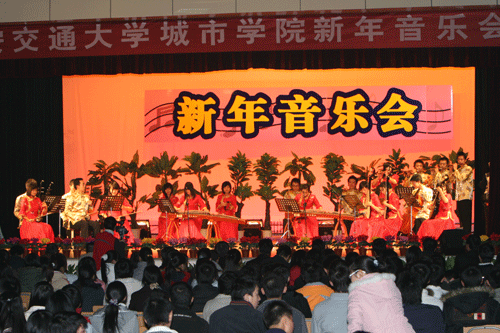 2007年12月29日晚7点30,由院学生教育服务中心、团委和学生艺术团主办的“新年音乐会”在学生活动中心隆重举行。西安交通大学社会教育管理处冯晓光处长,西安交通大学博通股份有限公司总经理、学院董事长雷厉先生,西安经济技术开发区草滩生态园管理办公室主任徐寿琨先生,西安现代农业综合开发总公司总经理刘高峰先生,学院党总支书记、常务副院长陈光德教授,副院长李能贵教授,副院长张敬朝高级工程师,党总支副书记、副院长韩超副研究员及各个部门和各系领导出席了新年音乐会。全场近1200余听众在音符的跳动中感受来自新年的祝福。
