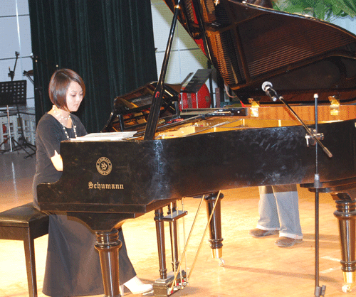 本次音乐会分为难忘07、喜迎08和祖国颂三个乐章。整场音乐会在《铃儿叮当响》的欢快音符中拉开了帷幕。一曲《喜洋洋》以坚定有力的节奏一气呵成,笛子声部的重迭、顿音和加花的手法,轻快活泼,并增加了热情洋溢的气氛,二胡以各种技巧润饰旋律,木鱼则以规整的节奏衬托曲调,喜悦的歌声犹闻在耳,艺术团的同学们用传统的音韵叩响了时间老人前进的步伐,见证了民族的才是世界的,将音乐会推向了高潮。学院青年教工马妤和马蕊分别以钢琴独奏《少女的祈祷》和手风琴独奏《小河淌水》为广大师生送去了新年的祝福。