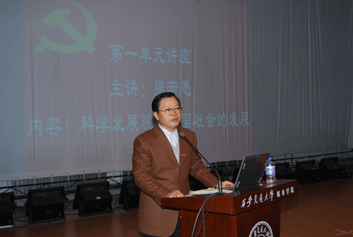 最后,张若愚教授为全院党员作了题为《科学发展观与中国社会的发展》的十七大精神辅导报告,大家听得全神贯注,受益匪浅。