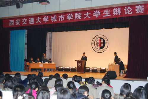 29日,西安交通大学城市学院第三届新生辩论赛经过四轮十四场唇枪舌剑的激烈对抗,在学院学生活动中心展开了最后的决战。