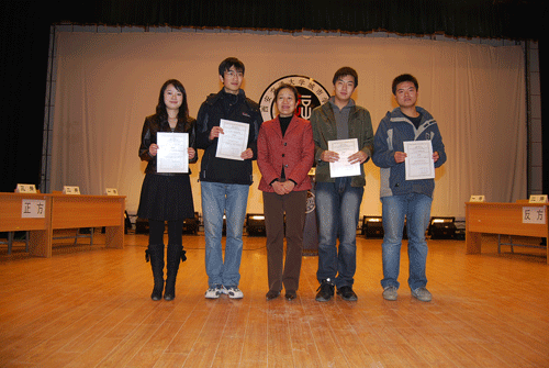 在过去的初赛、复赛、半决赛中,各位参赛选手才华出众,各队表现精彩纷呈,第四代表队和第六代表队一路过关斩将,从十四支代表队中脱颖而出。比赛开始之前首先播放了我院辩论队在第三届亚太华语辩论公开赛上与澳门大学的比赛录像,随后在一首动听的《中国话》的歌声中比赛正式拉开帷幕。两支代表队在当天的决赛中全力以赴、一争高下,经过激烈角逐,第六代表队获得冠军,第四代表队获得亚军;第八代表队和十四代表队获得优胜队奖。信息701谢阳、经管706马蕾、经管719牛茜、经管710杭菲、经管717白洋、经管705张静、英语701李丹、经管720王雪、经管709郭盼盼、经管709郭楠、以及经管708刘梦媛11位同学获得了决赛最佳辩手奖。